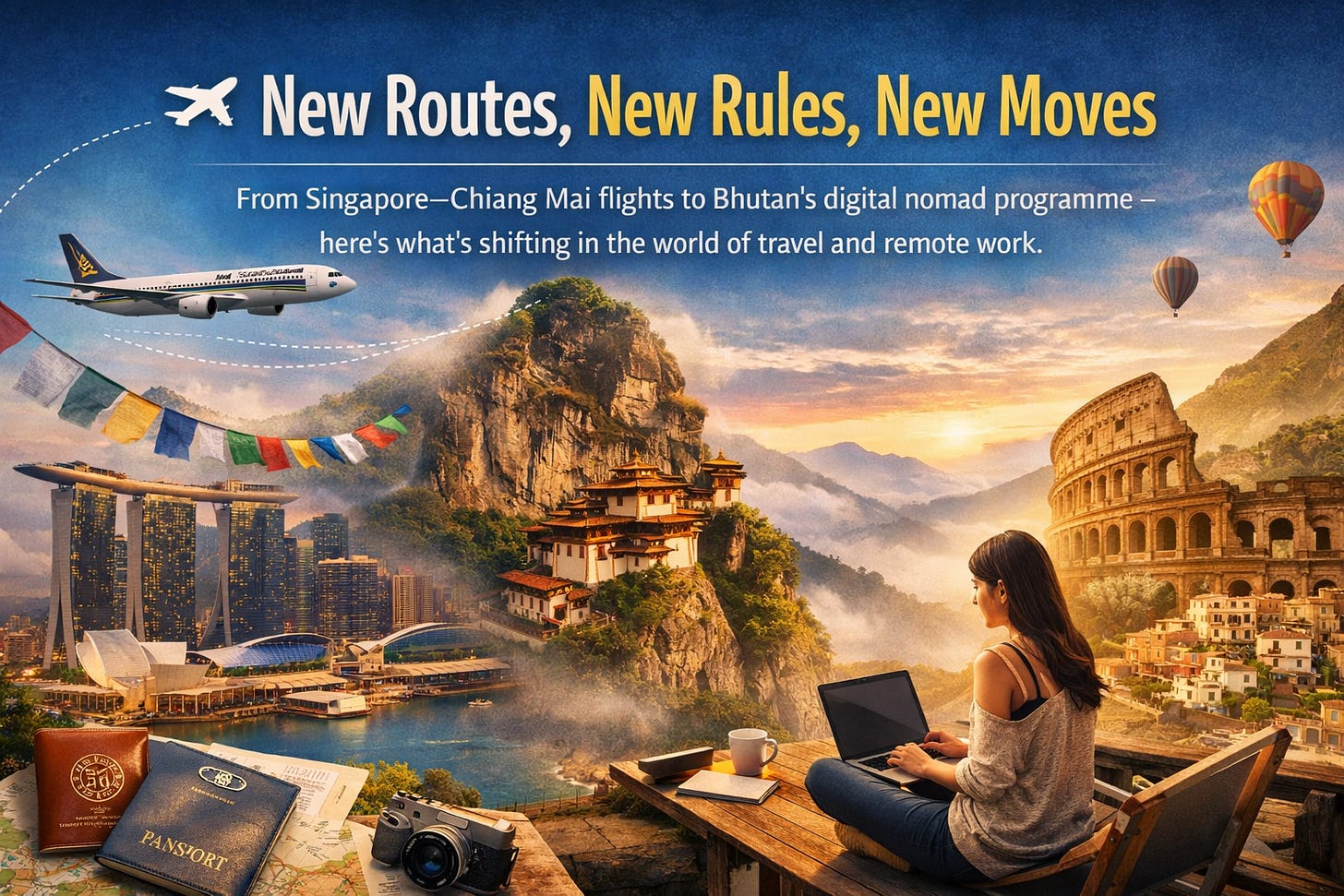 From Singapore–Chiang Mai flights to Bhutan’s digital nomad programme — here’s what’s shifting in the world of travel and remote work.