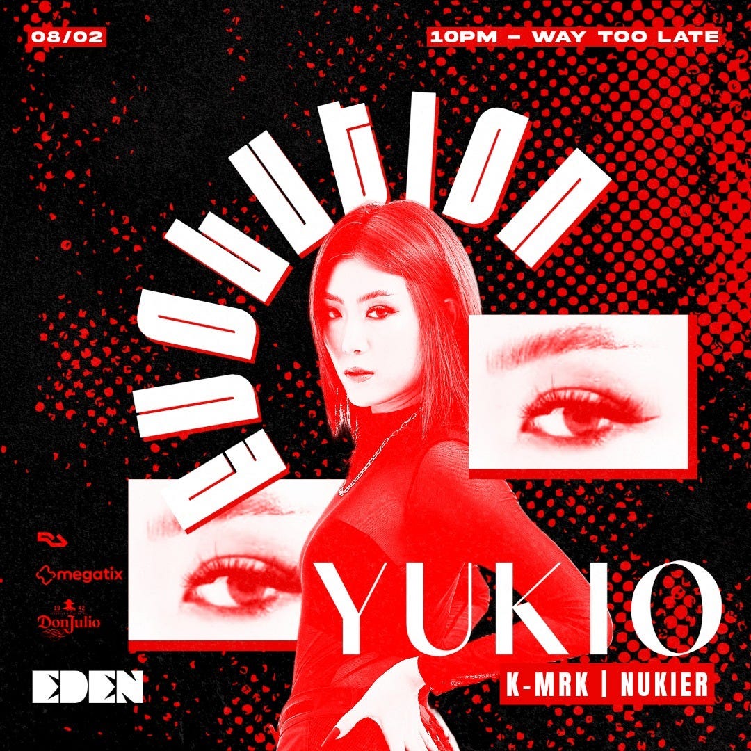 Prepare to groove all night long with YUKIO at EDEN! 🎶 Join us on February 8th for an electrifying blend of House and Trance, driven by her unique half Japanese and Thai background. 🚀 Don't let the chance slip away to experience the enchantment of South East Asia's emerging talent.