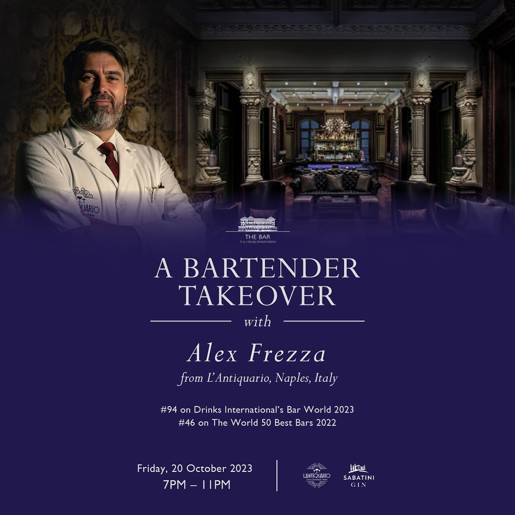 Co-founder and internationally acclaimed bartender from L’Antiquario in Naples, Italy; Alex Frezza is coming from the bustling streets of Naples to the Bar at the House on Sathorn. Don't miss the chance to experience the essence of Naples on October 20th, from 7 PM to 11 PM. 🆒