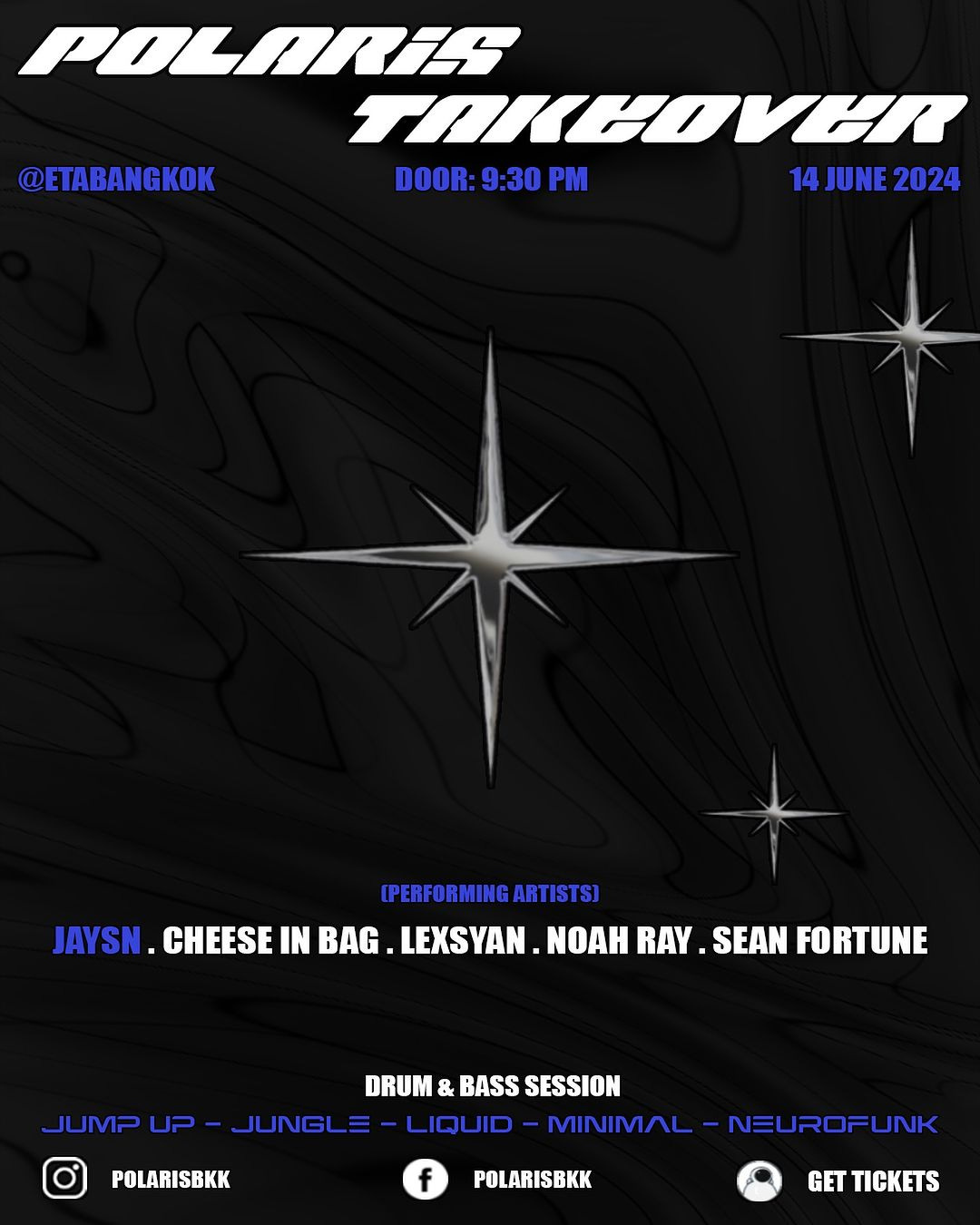 Since its debut in 2022, Polaris has been igniting the Drum & Bass scene across numerous cities. Now, with the eagerly awaited Polaris Takeover ETA Bangkok, the stage is set for the very first event since its resurgence as the premier Drum & Bass association based in Thailand. Don't let this event slip through your fingers—it's a must-attend!