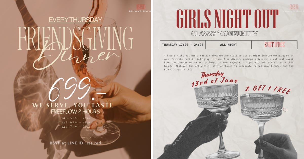 Get ready for an unforgettable evening filled with laughter, joy, and exquisite drinks at Red Whiskey & Wine Bar this Thursday! We're thrilled to announce not one, but two incredible deals specially crafted to make your Thursday extraordinary.