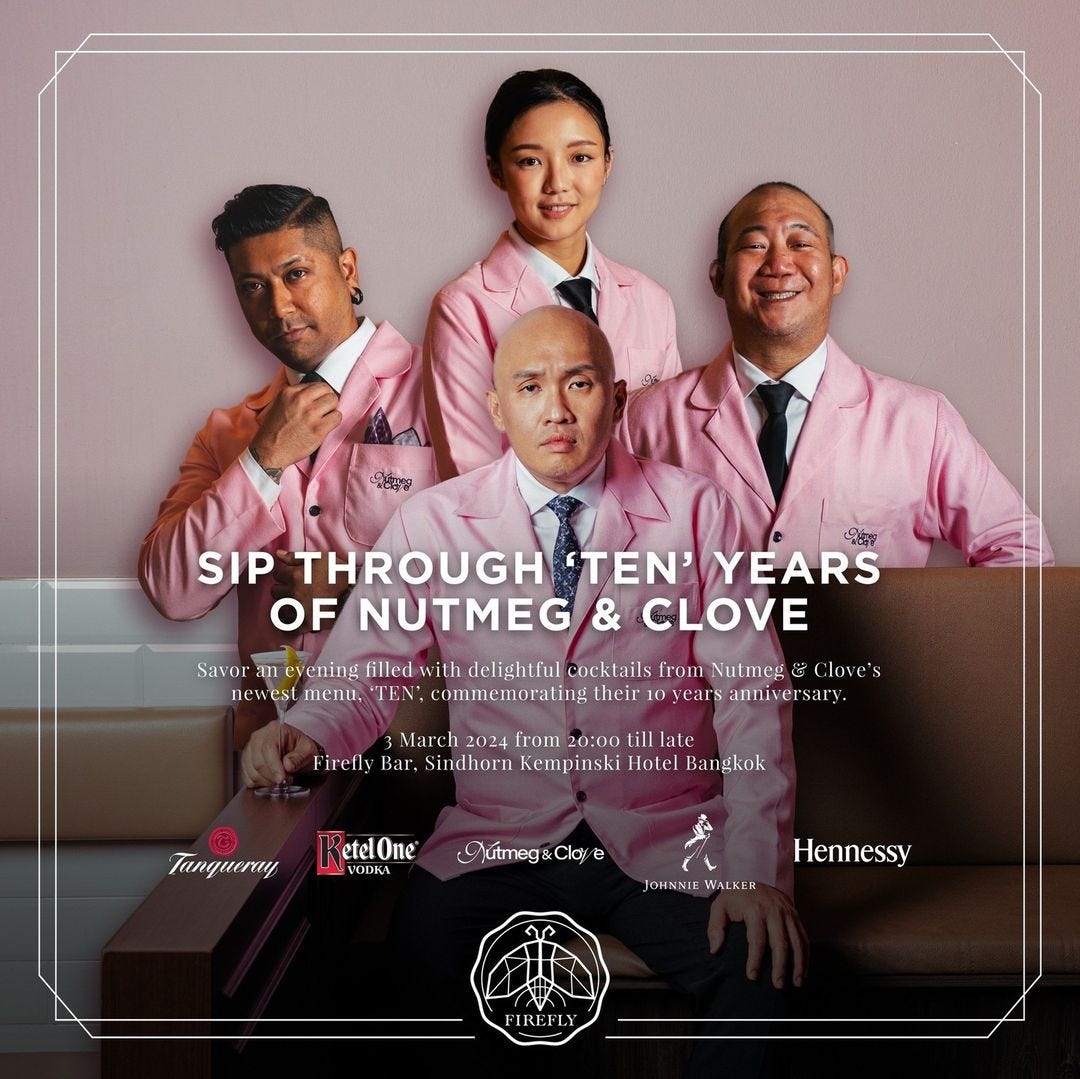 Ranked No. 7 on Asia’s 50 Best Bars 2023 list, Nutmeg & Clove celebrates its 10th anniversary by introducing their latest signature menu, "TEN," exclusively available at Firefly Bar for all patrons to enjoy. ⏰ 3 March 2024 from 20:00 till late